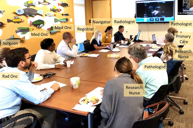 We gather the surgeons, pathologists, imagers, radiation oncologists, medical oncologists and nurses to review and discuss each patient’s data to achieve the best comprehensive treatment plan. These meetings occur every week so no patient is left out.